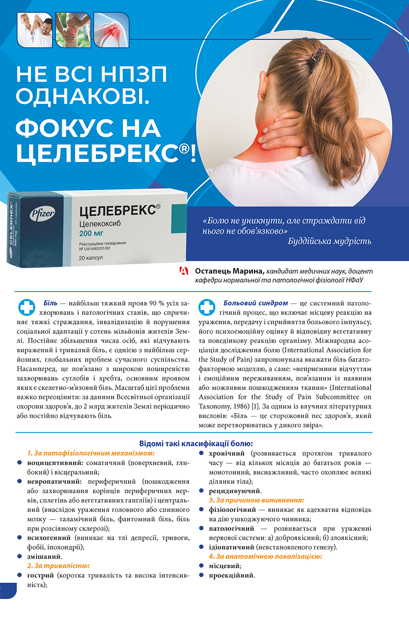 Стаття журналу «Сучасна фармація», що присвячена питанню больового синдрому та вибору НПЗП